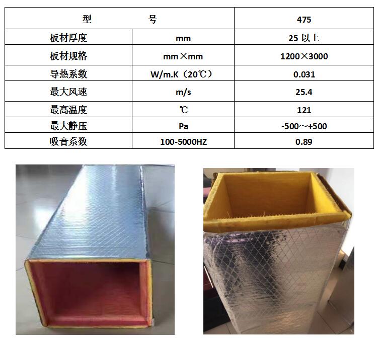 475型产品的描述舒易节能消音风管II型板材是由复合铝箔和高密度的离心玻璃纤维板制成的,由外向内共有三层组成。外层:是一层铝箔-玻璃纤维夹筋带-纸所组成的复合夹筋铝箔,作为风管板材的外围保护层,是一层良好的气障;内层:为黄色的玻璃纤维板,主要用于风管的保温及吸声性能;内表层:覆盖一层阻燃的、经特殊处理的、防霉、防潮的丙烯酸涂层网格布,能有效地阻止玻璃纤维碎屑随风进入室内。
